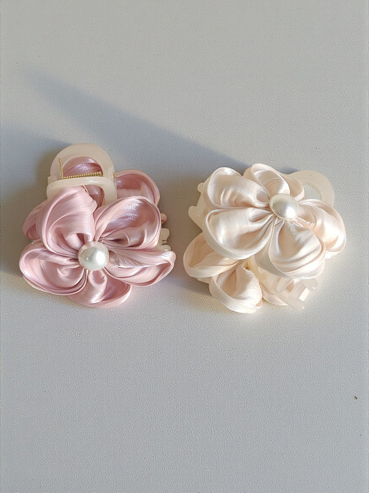 Satin Pearl Bloom Claw Clip - Set of 2